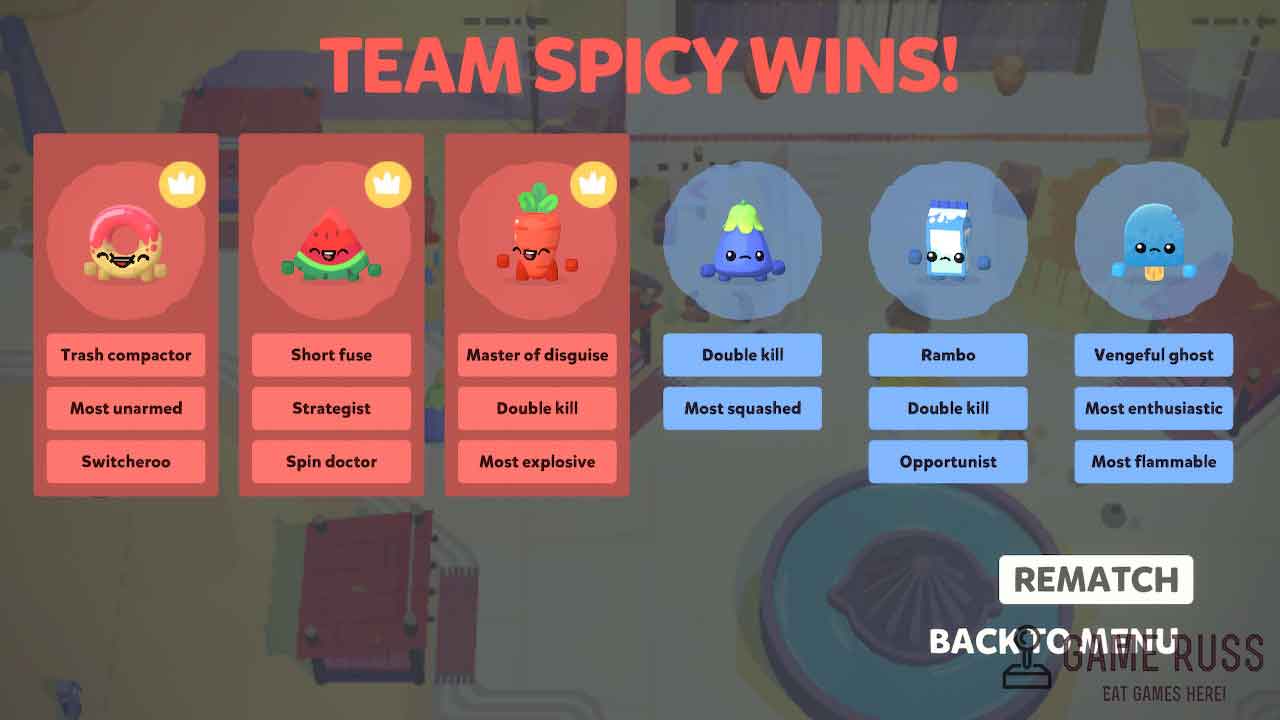 Гэтыя смачныя садавіна і прадукты атакуюць адзін аднаго бумерангамі ў гульні. Вы можаце перамагчы іх, кінуўшы бумерангі ў суперніка, але асноўная гісторыя пачынаецца, калі ўсе вашы кідкі вернуцца ў квадрат. Не паварочваецца. Акрамя таго, не ўсе запускі могуць дасягнуць месца прызначэння. Аднак, калі вы кідаеце бумеранг, калі бумеранг не набліжаецца да вас і дзесьці затрымаецца, вы безабаронныя, і іншыя гульцы могуць нацэліць вас на гэты раз. Дык што рабіць у гэтай сітуацыі? Адказ просты! Вам трэба бегчы за вашым бумерангам на гульнявой карце і падняць яго, каб вы маглі зноў атакаваць іншых гульцоў.