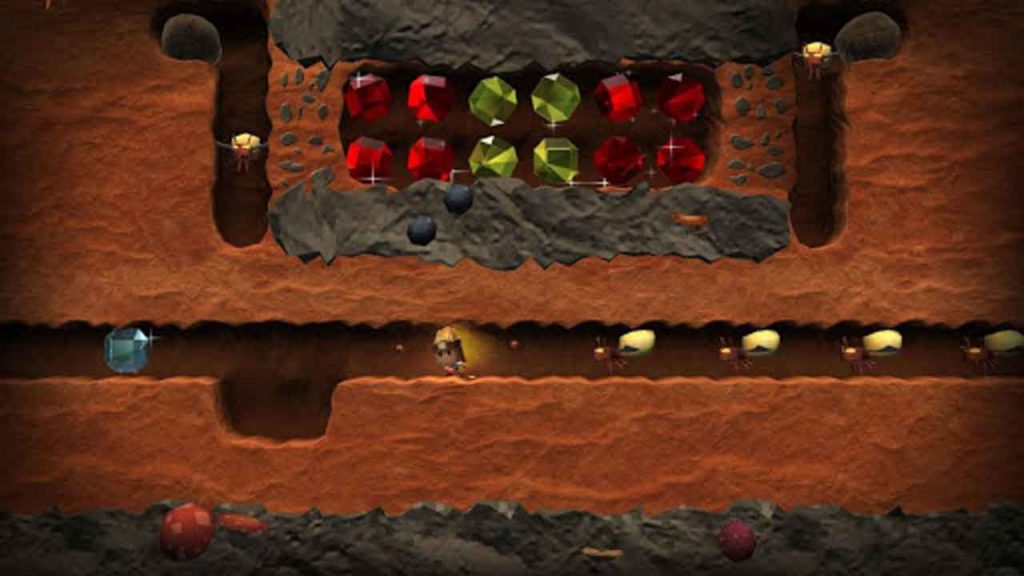 Гэтая канцэпцыя – гэта простая гульня-галаваломкі, вы гуляеце, збіраючы ўпрыгажэнні і шмат знаёмых вылазак, каб выкапаць пячоры. Заканчваючы ў ніжняй частцы кута, дзе гульня можа здзівіць вас ва ўсіх чатырох напрамках, каштоўныя камяні, якія ляжаць у вас камяні, два чалавекі не патануць. Даданне трох бясстрашных гульняў час ад часу з’яўляецца больш азартнай ігрой, як калі б гэта азначае выкарыстанне таймера, калі вы гуляеце больш за адно цела рок-рока і раздушыце.