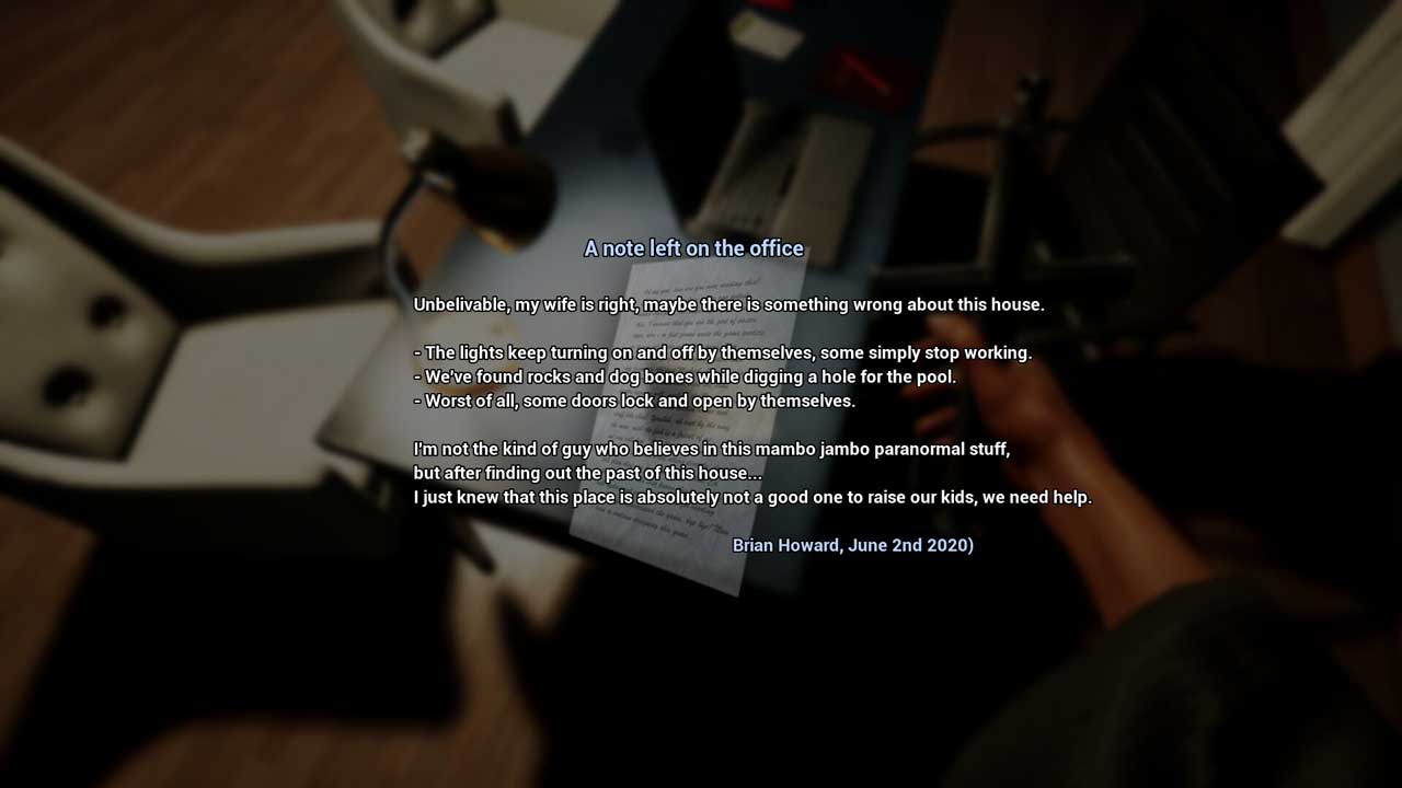 Гэтая гульня сапраўды мяне напалохала, і гэта індзі-хорр у лепшым выглядзе/як і павінна быць. У мяне не было ні хвіліны, каб адпачыць на працягу ўсёй гульні, і з-за страхаў, бітваў і паваротаў, якія яна прапануе, яна ніколі не падводзіць. Як чалавек, які гуляе ў шмат жахаў, я хацеў бы, каб было больш падобных гульняў. У мяне вельмі змешаныя пачуцці наконт гэтай гульні, яна выглядае цудоўна, і гісторыя вылучаецца сваім жанрам, але не спрабуе стварыць новую тэму.