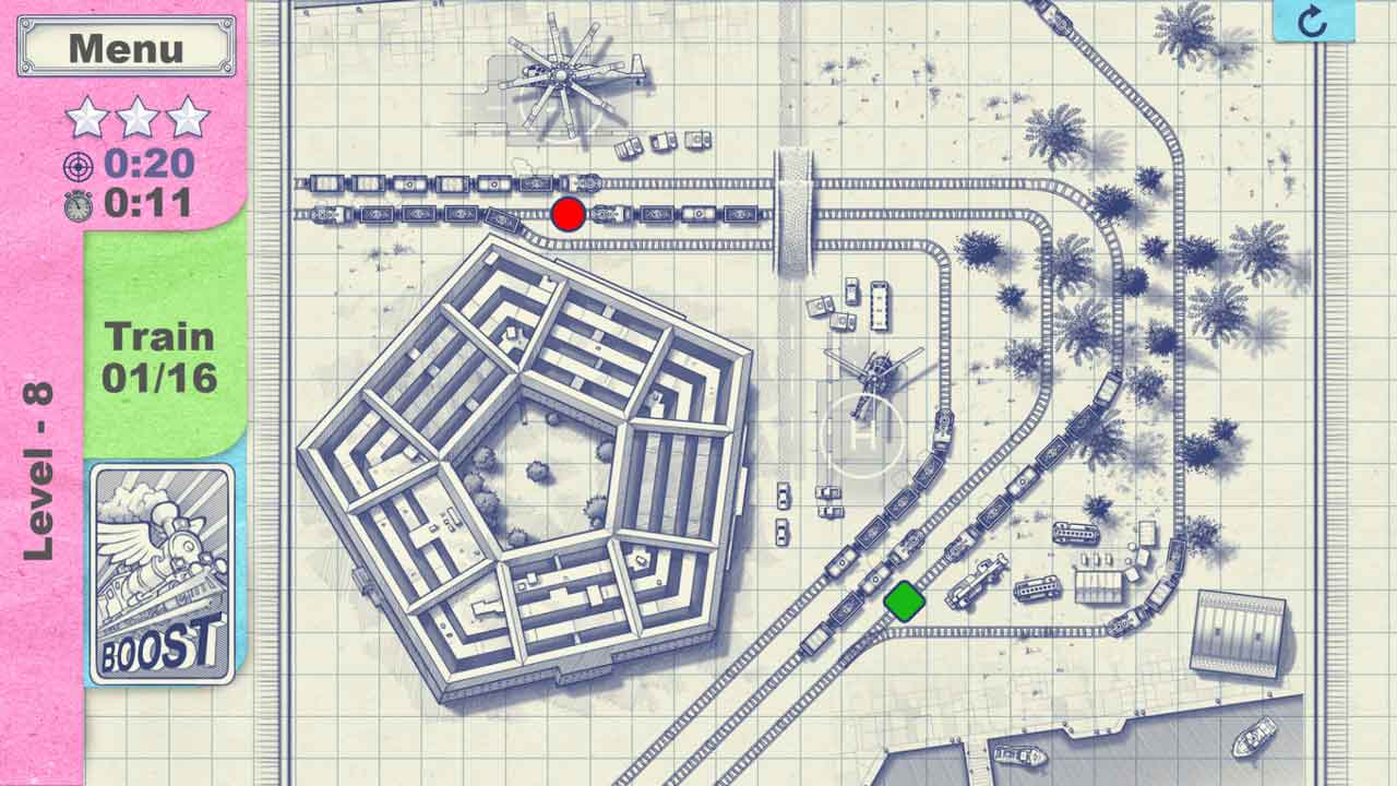 Paper Train мае 300 усё больш складаных этапаў у Paper Train. Спачатку вы адчуваеце, што вельмі проста пераканацца, што вы заблакавалі рэйку, каб прайсці яшчэ адзін цягнік, а потым разблакаваць яго. Ваша мэта складаецца ў тым, каб пераканацца, што нумар цягніка прыбыў, і тады вы будзеце паспяховымі.