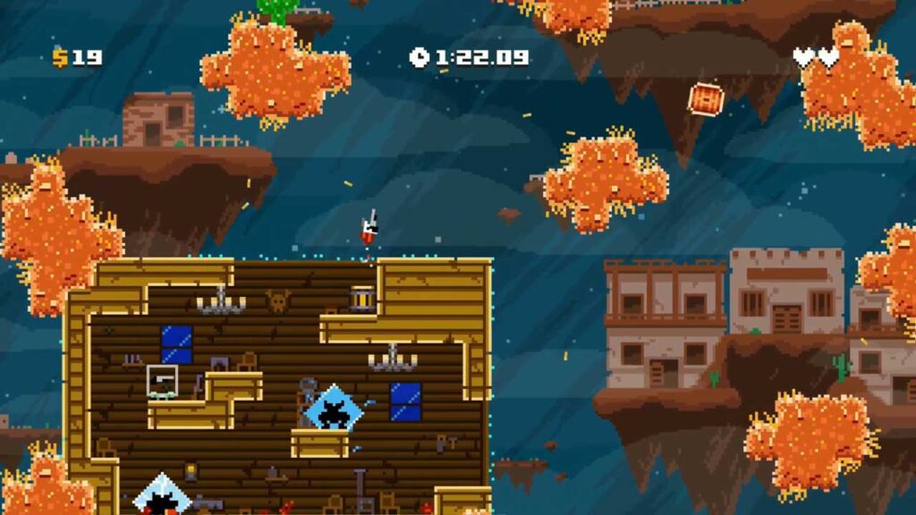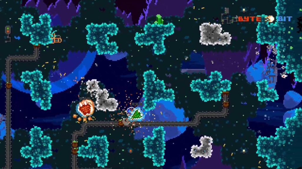 Галоўнай асаблівасцю гульнявога працэсу гэтай гульні з’яўляецца тое, што яна змяшчае элементы платформера перад шутэрамі зверху ўніз, што вылучае яе сярод іншых падобных гульняў. Залятаючы карабель у мноства «платформерных зон», ён узрывае ваш карабель і збівае вашага пілота на зямлю. Адсюль вы можаце рухацца з нармальнай гравітацыяй і маеце просты меч. Меч можа рэзаць іншых байцоў або парыраваць іх атакі.