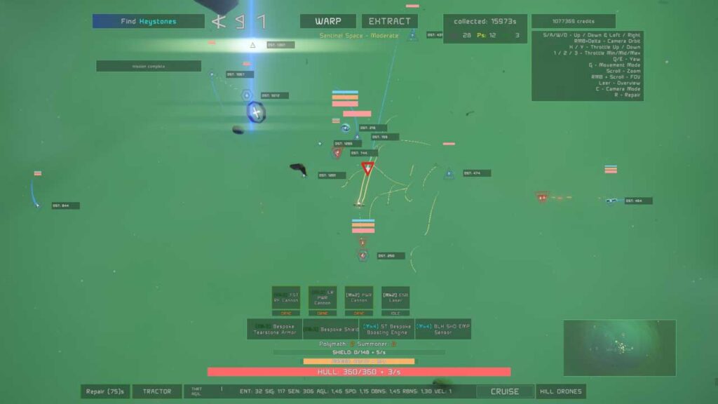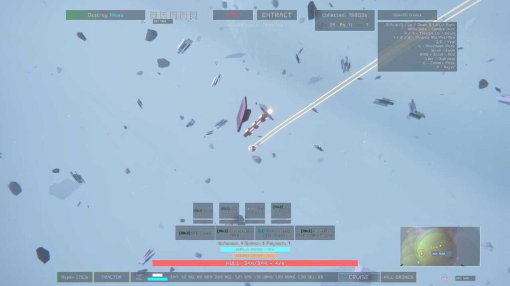 Спачатку можа быць бянтэжача кіраваць камерай, ваш карабель мае два рэжымы кіравання; Сучаснае кіраванне і пашыранае кіраванне. У Сучасным кіраванні няма кіравання па рысканні (калі я правільна разумею), таму ў гэтым і заключаецца сапраўдная розніца. Зараз, відаць, кантролеры падтрымліваюцца ў пэўнай ступені. Я не спрабаваў карыстацца сваім кантролерам, але спадзяюся, што ў будучыні ён будзе цалкам падтрымлівацца. Такім чынам, калі камера перавернута дагары нагамі, націсканне E прымусіць карабель рухацца ўлева і г.д. Менавіта гэта спачатку прыцягнула маю ўвагу. Але, паварочваючы паміж двума відамі камеры, вы можаце правільна размясціць камеру за сваім караблём. Такім чынам, карабель будзе накіраваны ў правільны бок. У наладах ёсць іншыя параметры камеры, але я імі не карыстаюся.