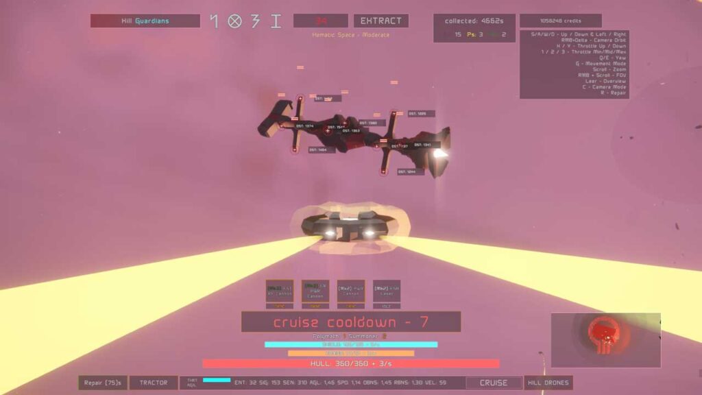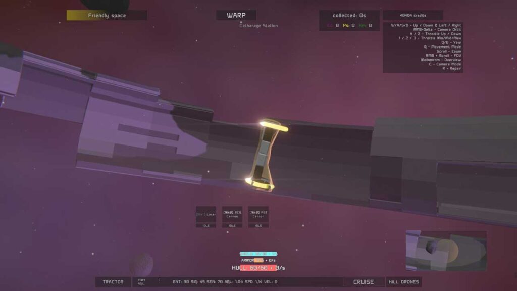 Асвоіць кіраванне ў Catharage не зойме шмат часу, хоць часам вам давядзецца пераключацца паміж рэжымам агляду і звычайным рэжымам, каб пераканацца, што вы правільна наладзілі нешта і каб пераканацца, што карабель не знаходзіцца ззаду або побач з абломкамі, якіх вы не бачылі. Тут не так шматлюдна, як здаецца, хіба што вы знаходзіцеся ў кучы караблёў вакол сябе, што можа быць вельмі весела, калі ў вас ёсць фірмовае месца, якое робіць вас амаль нябачным для іх. Мне ўдалося зрабіць гэта з самым маленькім караблём з дапамогай некалькіх модуляў, якія знізілі маю сігнатуру да 1. Але самы маленькі карабель, які таксама з’яўляецца самым хуткім, мае толькі адзін адсек для зброі. Аднак я выкарыстаў модуль браніравання, які таксама меў магчымасць ствараць пастаянны паток з 30-секундным часам разагрэву.