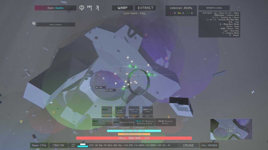 Рэжым агляду таксама карысны для прагляду скрынь, якія выпадковым чынам плаваюць у космасе. Скрыні, металалом, энергетычныя элементы — усё неабходнае для разблакіроўкі новых караблёў. Металалом таксама выкарыстоўваецца для рамонту вашага карабля падчас падарожжа ў космасе. Вы таксама можаце знайсці модулі, якія можна ўсталяваць на свой карабель, такія як браня, шчыты, рухавікі і зброя.