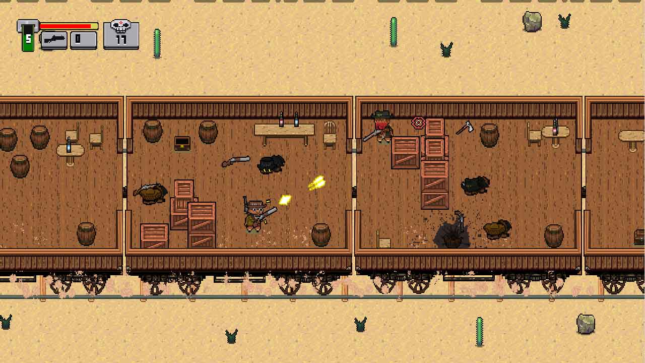 Па шрыфце меню, анімацыі персанажаў і простых, але клішыраваных малюнках гэтай гульні мы можам зразумець, што яна заходняя, і адгадаць гісторыю і мэту гульні! Так, гісторыя пра ўмелага стралка, які прыводзіць ворагаў за добрую ўзнагароду, з тым самым адмысловым адзеннем і ботамі, гукам стральбы, пахам пораху і бясконцымі раўнінамі, а таксама сябрам, верным, гатовым да прыгод .