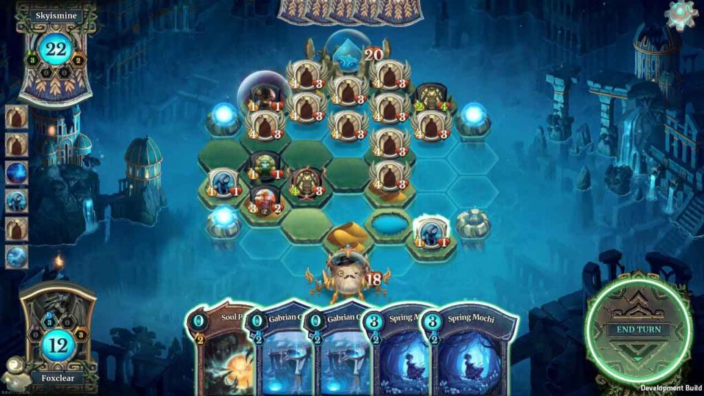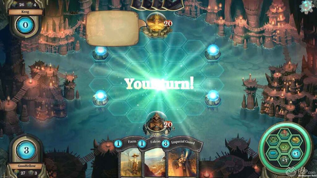 Перадумова гульні простая: вам трэба будзе выкарыстоўваць сваю калоду і рэсурсы, каб будаваць землі і выклікаць істот, якія вы можаце выкарыстоўваць для нападу на ворага. Зрабіце гэта дастаткова разоў, і вы зможаце зламаць яго шар, выйграўшы бітву. Вы зробіце гэта, выдаткаваўшы Faeria – гульнявую валюту -, якую вы атрымаеце падчас кожнага ходу. Вы можаце перамяшчаць курсор вакол гульнявога поля, націснуўшы кнопку, каб выбраць зямлю, выкарыстоўваючы кнопку на плямах, якія вы хочаце пабудаваць.