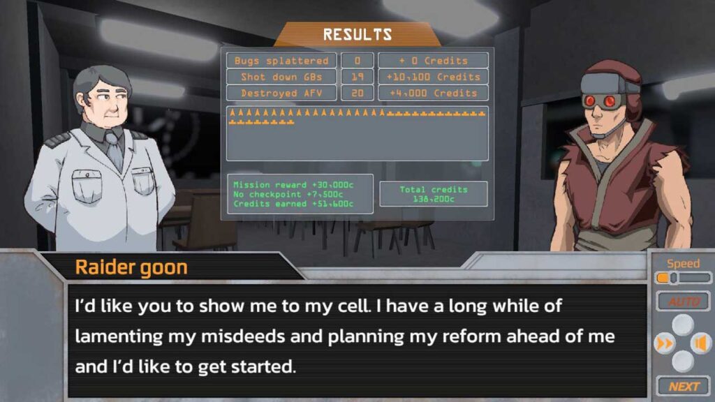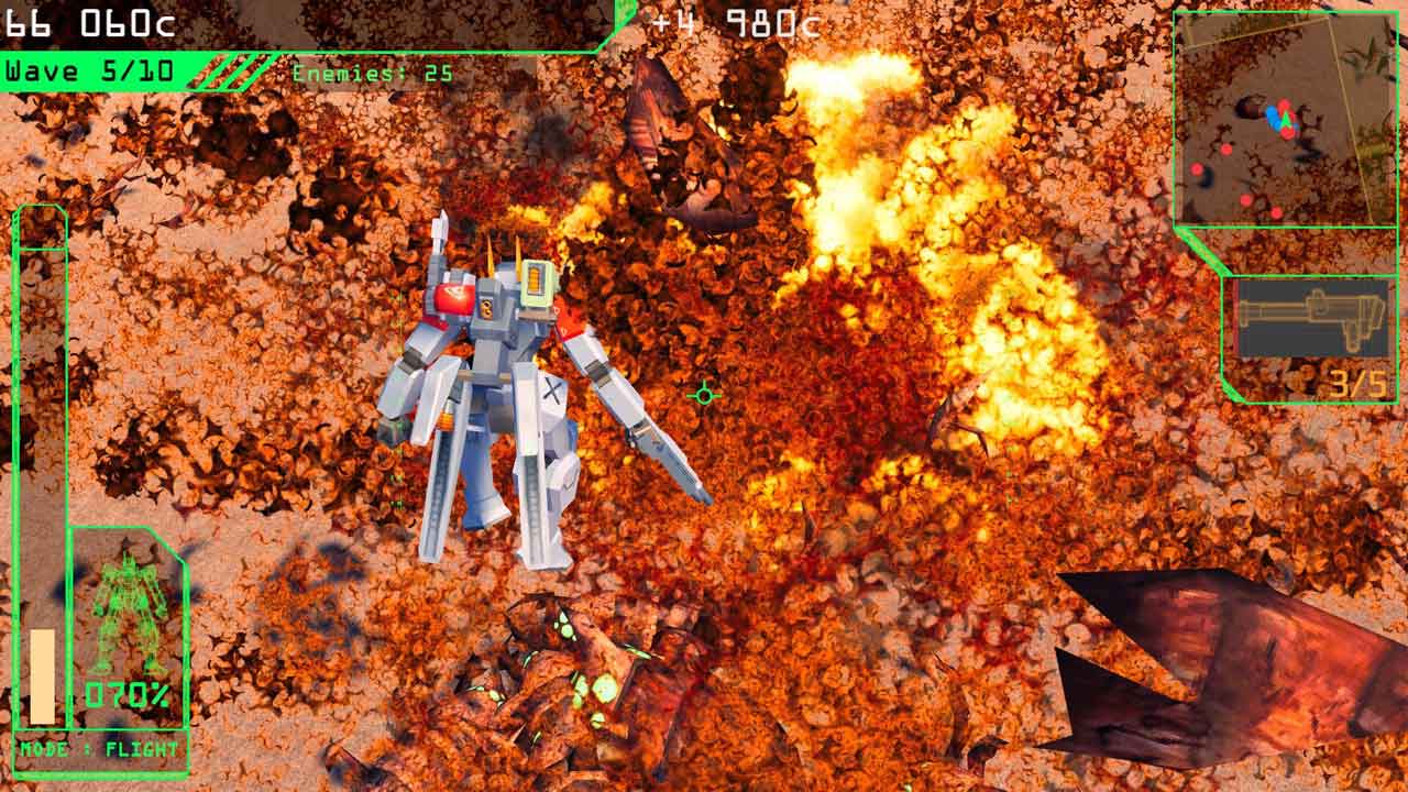 Насамрэч, гульня мае вельмі хаатычны характар, вы сутыкнецеся з мноствам ворагаў і будзеце выкарыстоўваць разнастайнае абсталяванне, каб вырашыць праблемы і прайсці праз поле бою. Ёсць таксама хвалевы рэжым выжывання з рэгуляванымі параметрамі, які дадае магчымасці для паўтарэння гульні. Аднак я не магу быць занадта рэзкім, улічваючы, што ў гульні вельмі невялікая каманда распрацоўшчыкаў, але я спадзяюся, што яны змогуць зрабіць годны працяг, выкарыстоўваючы ўрокі, атрыманыя з гэтай гульні і іх цяперашняга праекта. Я вельмі рэкамендую паспрабаваць гэтую гульню, і яна, несумненна, забаўляе вас гадзінамі, калі вы шукаеце падобныя гульні, як Armored Core.