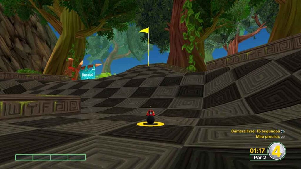 Адзіныя прыкметы геймплэя ў мяне ёсць адсутнасць міні-карты і мізэрная колькасць інфармацыі з лічыльнікам магутнасці. Міні-карта, хоць і не даецца магчымасць свабодна перамяшчаць камеру перад пачаткам развароту, будзе карысным дадаткам, паколькі гэта аблегчыць прагляд больш “відовішчных” курсаў. Зрэшты, ёсць курсы, якія прызначаны для таго, каб у іх былі трубы, якія перасякаюць дарогі па лабірынце, і міні-карта можа паставіць пад пагрозу гэтую частку гульні, але варыянт усё роўна будзе добры. Акрамя таго, лічыльнік магутнасці часам бывае цяжка выкарыстоўваць. Я выявіў, што, калі ацэньваў, як моцна будзе ісці мяч, праходзіў усё зноў і зноў. Вядома, практыка карысная ў кожнай гульні, але ёсць шмат выпадкаў, калі вам прапануюць розныя пандусы і паўтрубы, якія могуць выкінуць, наколькі цяжка вы чакаеце біць мяч. Я не шукаю маркера, які кажа, што “ваш шар прызямліцца тут”, але што-небудзь, каб паказаць адлегласць з шарам, было б карысна.