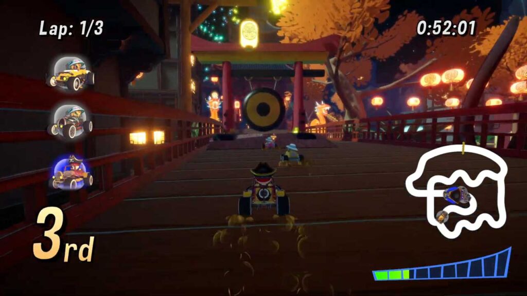 Другая сур’ёзная слабасць гульні — яе бонусы. Нягледзячы на тое, што ў гульні ёсць такія асноўныя элементы жанру, як ракеты, шчыты і турбаўзмацненні, большасць прадметаў здаюцца занадта паўтаральнымі і ім не хапае візуальнай прывабнасці або стратэгічнай вытанчанасці, як у больш вопытных картах. Напрыклад, калі вы няправільна выкарыстоўваеце ракету, яна перакуліцца і ўрэжацца ў вас. Гэта здаралася са мной у некалькіх момантах гульні, што мяне вельмі адштурхнула.