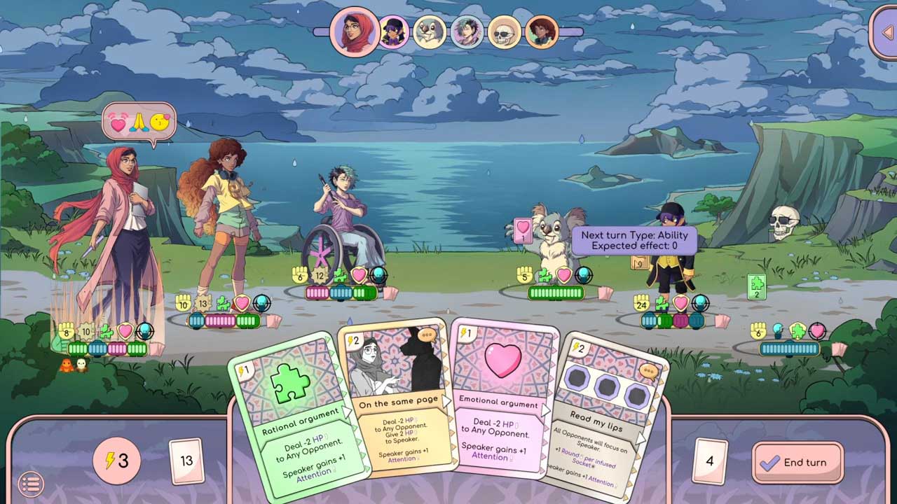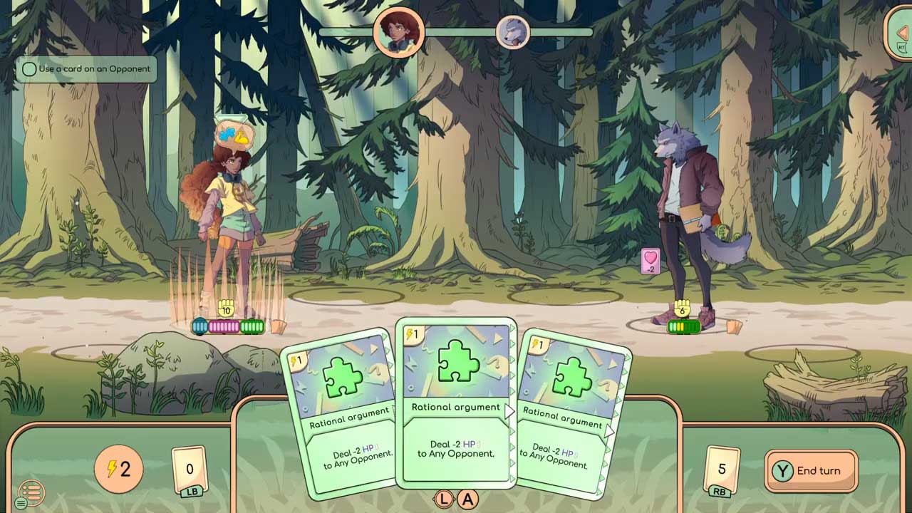 Па-першае, у гульні ёсць вельмі добры падручнік, які знаёміць з яе механікай, акрамя таго, яна больш зручная для гульцоў з калодай карт, таму, калі вы пачатковец у гэтым жанры, гэта можа быць добрым месцам для пачатку. Што тычыцца геймплэя, то ў гэтай гульні вы спрачаецеся, а не перамагаеце. Бітвы вядуцца з выкарыстаннем калоды карт (вы атрымліваеце новыя карты падчас гульні). Калі вы прайграеце бітву, вам трэба перазапусціць толькі бягучую карту, а не ўсю гісторыю, і вы захаваеце атрыманыя разблакіроўкі. Вы таксама можаце разблакіраваць мілых лялек, якіх можна экіпіраваць, каб палепшыць свае статыстычныя дадзеныя.