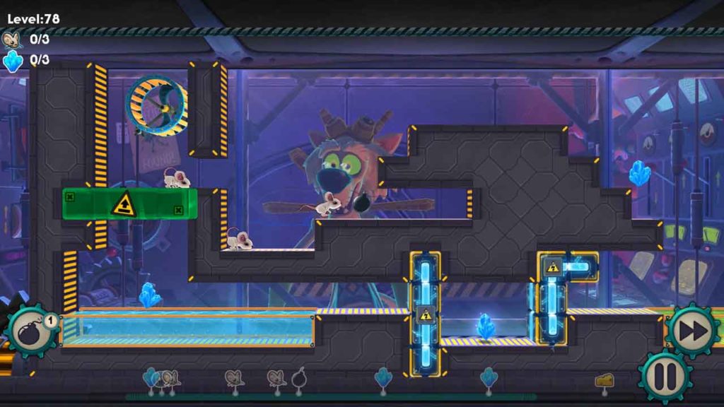 Гульня пачынаецца з простай інтэграцыі і галаваломак. Дададзена яшчэ гісторыя з інструментам. У канчатковым выніку ў вас ёсць некалькі невынішчальных сігналаў тэтрамера, у той час як іншыя мышы прайшлі праз шэраг аварый. Пры правільным разгортванні электрычны ўдар альбо ў якасці ўзнагароды для сябе. У канцы гульні вы не атрымаеце блок перамяшчэння, блок, які не толькі можа вам гуляць ролю, напрыклад, не выпадкова не будзе разбураны кіслай ваннай. Вы таксама бомбы – Абараніце выбуховую моль, каб нанесці ўдар уладальніку шлагбаума, пакуль блокі не стануць настолькі слабымі, як абараніць іх аднаго ці таго, што яны могуць узгарацца ў іншым запале.