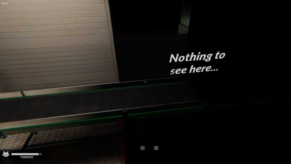 Я скончыў гульню менш чым за дзве гадзіны, памёр толькі аднойчы і зрабіў гэта за 9 дзён у сховішчы. Гульня стала нашмат менш страшнай, калі я зразумеў, што на паверхах складоў трэба сачыць толькі за адной рэальнай рэччу. Гульня ў значнай ступені залежыць ад таго, што яна робіць з жудаснымі ўкусамі або навакольным шумам, каб стварыць фактар страху, і вы хутка даведаецеся, што толькі крадучыся вораг з характэрнай хадой можа нашкодзіць вам.