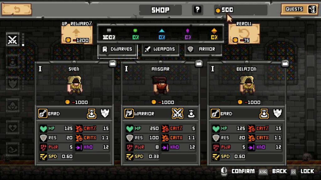 Акрамя таго, вы будзеце зарабляць залатыя манеты пасля кожнай атакі. Вядома, варта адзначыць, што ўсе прадметы ў краме не абнаўляюцца пры куплі, аднаўляюцца толькі прадметы ў адпаведных слотах, якія вы набылі. У той жа час вы таксама можаце абнавіць краму, якая асвяжае гномаў, палепшыць зброю і даспехі. Аднак варта адзначыць, што абнаўленні не сумяшчальныя ў гэтых трох крамах, і вы ўсё роўна павінны асцярожна выкарыстоўваць свае грошы.