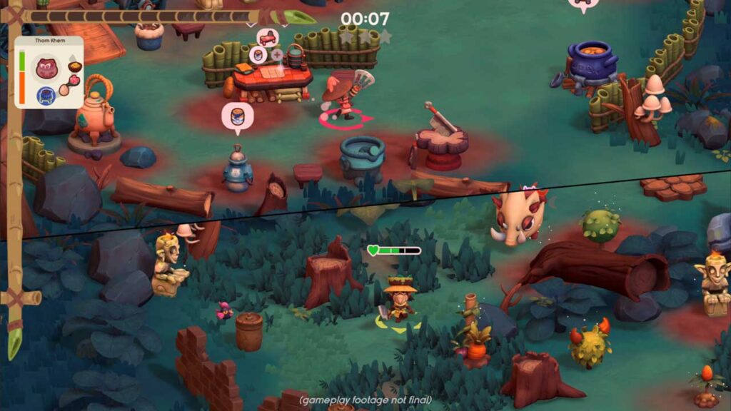 Геймплэй цікавы і надае ўнікальны паварот жанру Overcooked/PlateUp, прымушаючы вас шукаць інгрэдыенты і гатаваць па рэцэптах, складанасць якіх паступова ўзрастае па меры праходжання. Мне насамрэч гэтая гульня падабаецца больш, чым Overcooked, таму што кааператыўны аспект выглядае значна больш прадуманым. Вам даручаны ролі Сома – кухара, і Гона – паляўнічага. Хоць вы абодва можаце свабодна гатаваць і паляваць, ролі больш арыентаваны на канкрэтныя дзеянні ў гульні.