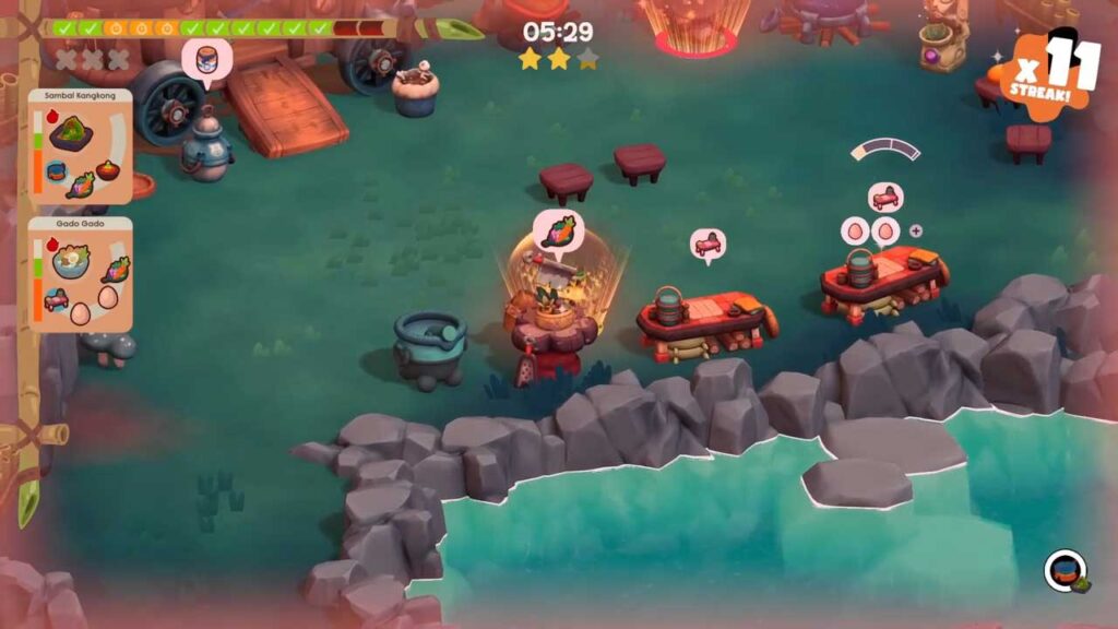 Спачатку я думаў, што геймплэй будзе падобны на Overcooked. Але пасля таго, як я пагуляў, я магу сказаць, што ў гэтай гульні ёсць свой уласны каларыт і асаблівасці. На мой погляд, галоўнае адрозненне і ўнікальнасць — гэта спаборніцкая механіка прыгатавання ежы і збору рэсурсаў. Адпраўляйцеся ў захапляльнае кулінарнае падарожжа, стварайце смачныя стравы і кідайце выклік сабе ў фантастычным аднаўленні Паўднёва-Усходняй Азіі!