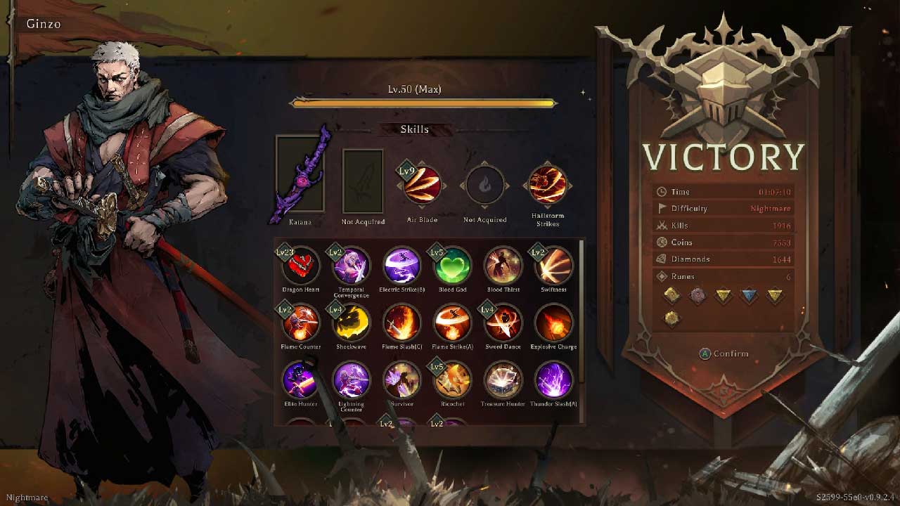Яны выкарыстоўваюцца для паляпшэння зброі (у тэрмінале вы можаце разблакіраваць праз мета-прагрэс), а таксама для пакупкі і продажу рун (таксама разблакіраваных мета-прагрэсам). Такім чынам, я мяркую, што сапраўдная мета – гэта фіялетавая валюта, якую вы атрымліваеце за павышэнне ўзроўню. Ваш узровень залежыць ад вашага ўліковага запісу, а не ад вашага персанажа, таму пасля кожнага прабегу, незалежна ад таго, наколькі далёка вы зайшлі, індыкатар прагрэсу будзе павялічвацца. Аналагічным чынам ваш узровень – гэта тое, як вы разблакуеце персанажаў.