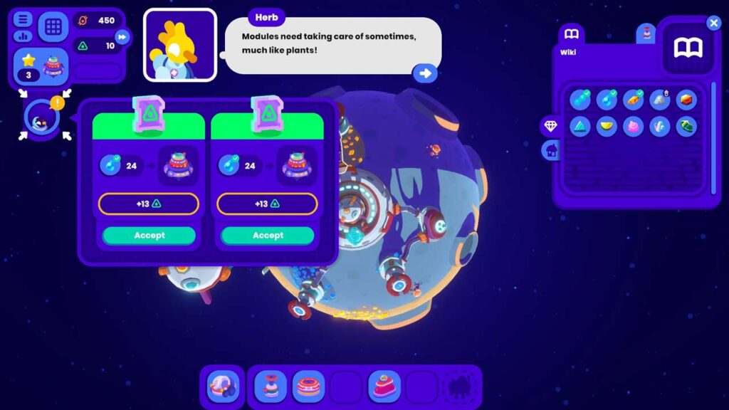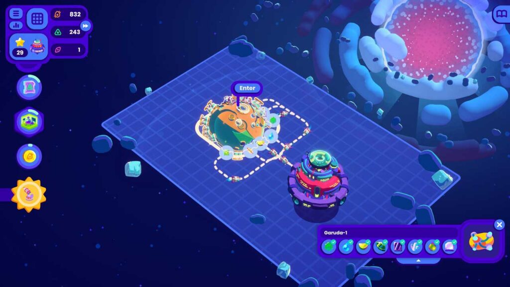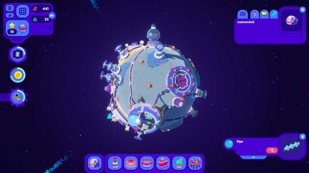 Кожны астэроід, які вы жывяце, — гэта складаная працэдурная пляцоўка, дзе вы будзеце ствараць фабрыкі, лагістычныя канвееры і ланцужкі паставак, адначасова круцячы астэроід у поўным 3D, каб максімальна выкарыстоўваць прастору. Гэта асвяжальнае адхіленне ад тыповых плоскіх карт жанру, якое прымушае гульцоў думаць у трох вымярэннях і эксперыментаваць з адпаведнымі макетамі на крывалінейных паверхнях.