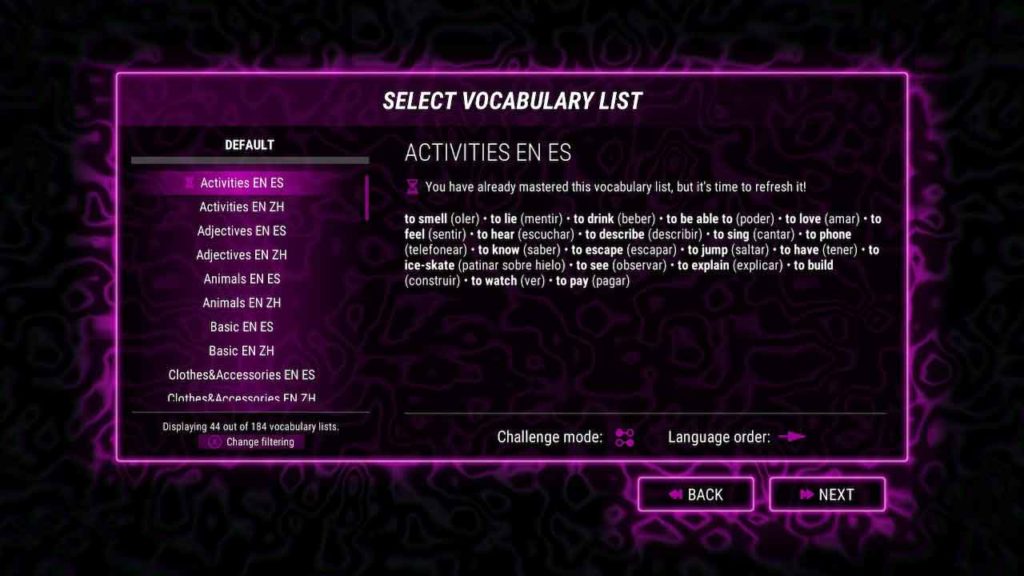 Тэма пасля выбараў пераходзіць на мову, якую вы можаце ў школе, гэта ўрад у пачатку гульні. Як толькі гэта будзе зроблена, вы можаце кінуць выклік сакрэтнаму рэжыму, і рэжым выкліку адкрыецца. Гэтыя пытанні і адказы з гульняў ўключаюць гульні, сімвалы, пытанні і групы спарвання. У выніку атрымліваецца, што ядро гульні іншае. Ёсць мовы, якія могуць быць размешчаны ў сям’і з іншымі мовамі, і набор пытанняў і адказаў на гэтую гульню, для гульні з ангельскімі словамі або фразамі трэба выбраць курсор на экране. Пасля выбару гульня выбірае падборку з чатырох ангельскіх слоў, французскіх слоў альбо фраз, звязаных з бягуном, якія маюць патрэбу ў правільным перакладзе.