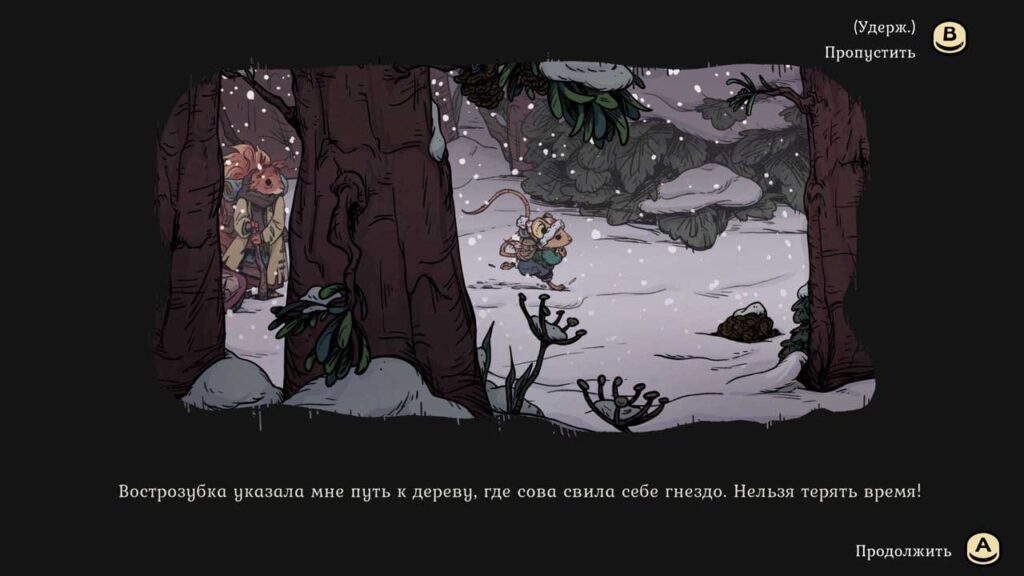 Цікава, што ў гульні так шмат чаго сказаць. Стыль малявання ад рукі прыгожы. Кожны кадр адчуваецца як старонка з зімовай казкі, напоўнены мяккім асвятленнем і дробнымі дэталямі, якія ажыўляе лес. Гукавое афармленне дадае гэтай цеплыні, ад хрумстка снегу пад нагамі да мяккай музыкі, якая робіць нават ціхія хвіліны асаблівымі. Нягледзячы на прыгожы выгляд, гульня даволі нядрэнна спраўляецца з голадам, спёкай і будаўнічымі задачамі.