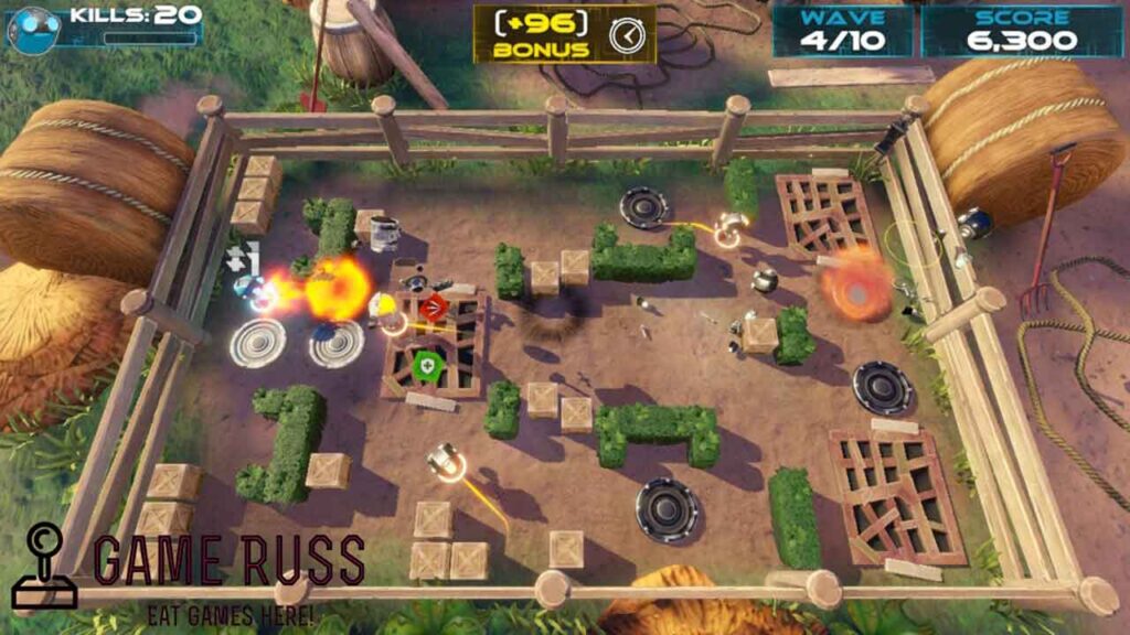 Але ў агульным апісанні гульні трэба сказаць, што людзі, якія цікавяцца вясёлымі і забаўляльнымі гульнямі без вялікіх праблем, карыстаюцца гэтай гульнёй, таму што агульны стыль гэтай гульні – вечарынка і дзеянне, але яна, безумоўна, прызначана для дзяцей. Але тут увогуле я павінен сказаць, што бойкі суправаджаюцца выклікамі, і гэтыя сутычкі распрацаваны ў розныя раўнды, і, на маю думку, кожны раўнд зойме больш за адну-дзве хвіліны, але пасля заканчэння аднаго раўнда пачынаецца наступны раўнд Гэта больш варожых робатаў атакуе, што абцяжарвае вас. У вас таксама ёсць пэўнае жыццё, і калі ваша жыццё скончыцца, вам давядзецца пачынаць зноўку з пачатку гэтага этапу, але калі раўнды скончацца, вы пяройдзеце на наступны этап, які мае новую карту і новыя перашкоды, якія вы павінны пераадолець, каб перамагчы. Знішчыце ворагаў. У вашых ворагаў таксама ёсць некалькі тыпаў, адзін з якіх знішчаны альбо адна стрэла, другі мае шчыт, які знішчаецца дзвюма стрэламі, а другі можа кідаць вакол стрэлы і …. Некалькі іншых тыпаў, якія дададуць да вашых праблем у гэтай гульні.